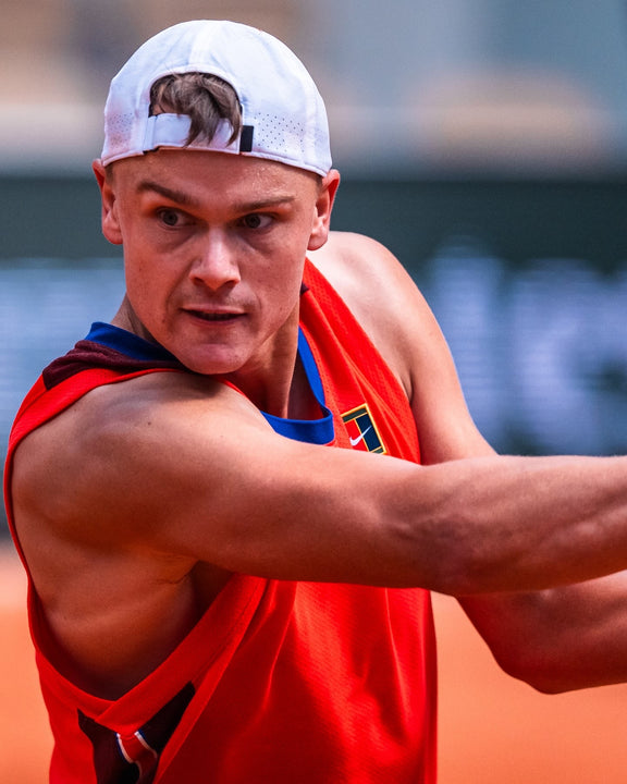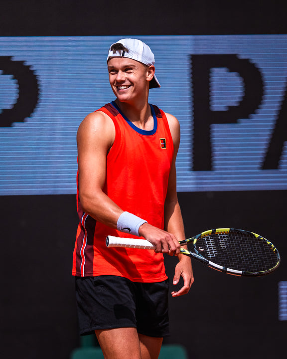 Signed and practice used sleeveless red shirt. Roland Garros 2025, limited