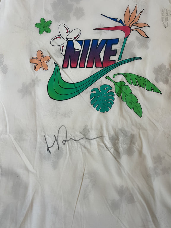 Signed and used happy vibe pattern t-shirt for practice or off court