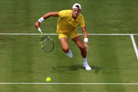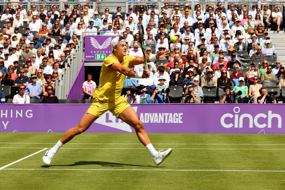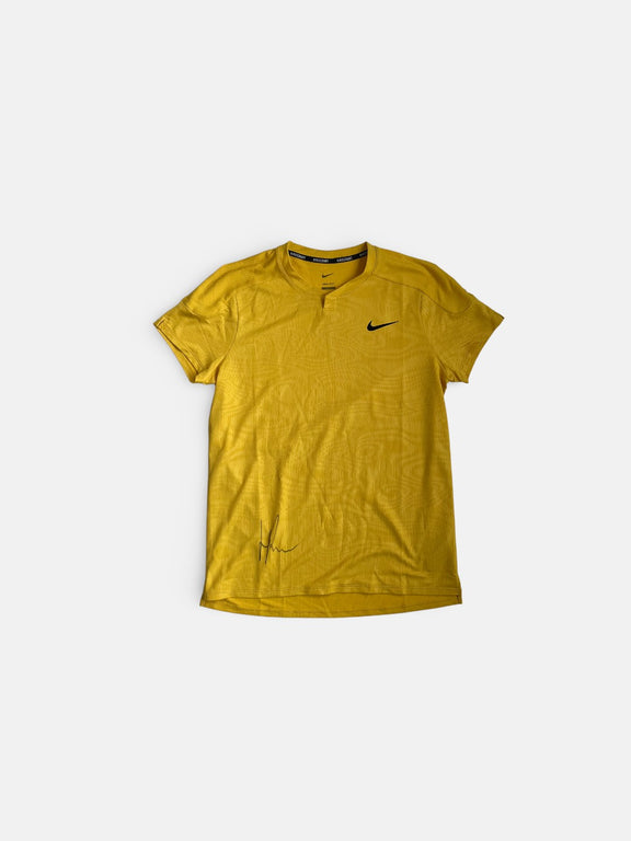 Mustard colored Signed and match used T-shirt from Queens, London tournament