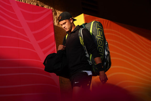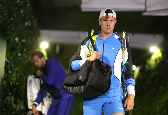 Signed drink Bag, black with green Nike name tag, used by Holger Rune on court in matches, limited