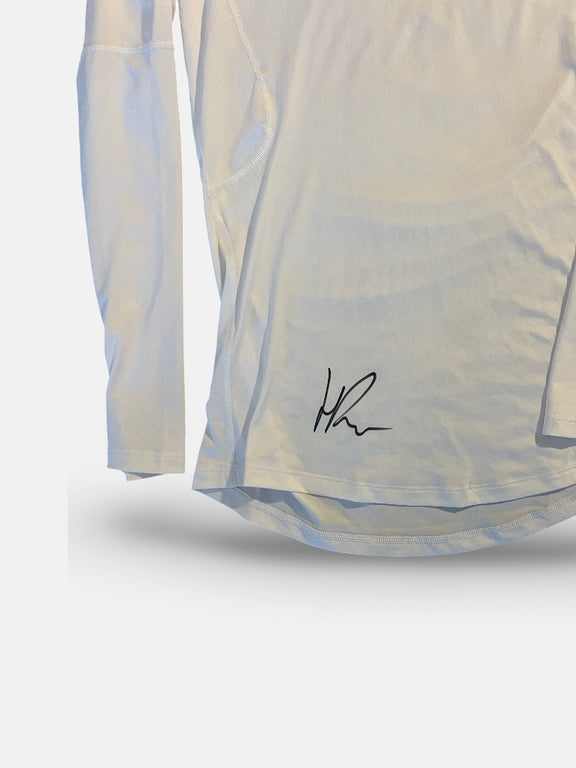 Signed white long sleeve practice shirt, slim, used by Holger Rune , limited