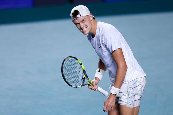 Signed match shorts, , ice blue and white pattern, worn by Holger Rune at Australian open and Acapulco , limited