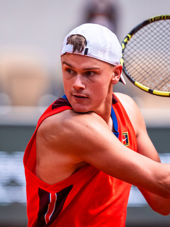 Practice sleeveless shirt, red, worn by Holger Rune in Roland garros 2025, limited, signed