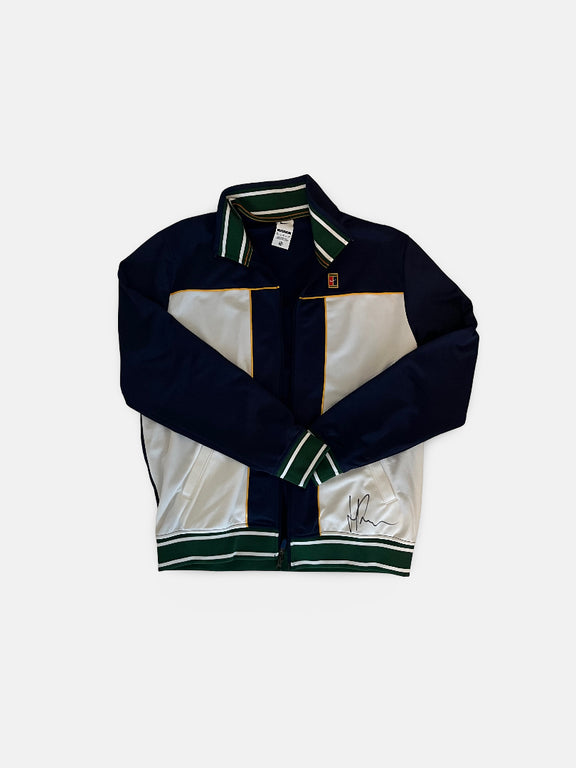 Signed Retro US Open training jacket, White/Navy/Green, worn by Holger Rune, limited, signed